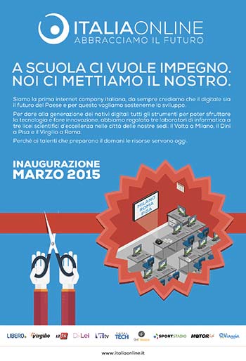 Per dare alla generazione dei nativi digitali tutti gli strumenti per poter sfruttare la tecnologia e fare innovazione, Italiaonline ha donato tre laboratori di informatica ad altrettanti licei scientifici d’eccellenza: il Volta a Milano, il Dini a Pisa e il Virgilio a Roma, le tre città dove il gruppo ha sede. L’inaugurazione dei laboratori è prevista per il prossimo marzo.