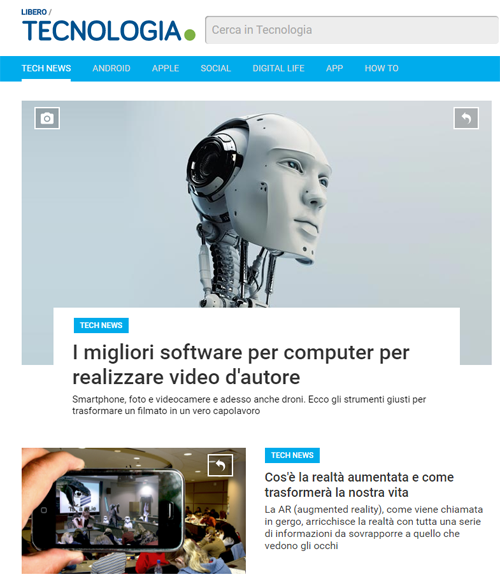 Libero Tecnologia nasce nel “mondo Libero” e ne mantiene la vocazione di portale di servizio e di fidelizzazione degli utenti, in primis gli utilizzatori della Libero Mail e delle sue app. Per loro, ma anche per tutti gli appassionati di hi-tech e per chi vuole tenere sempre un occhio aperto sul futuro, il verticale fornisce quotidianamente le ultime notizie di tecnologia, innovazione e digital life, con contenuti di qualità e chiarezza suddivisi in ben sette sezioni: