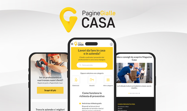 La piattaforma di PagineGialle Casa permette ai potenziali clienti di confrontare preventivi su circa 200 tipi di servizi, al fine di scegliere il miglior professionista della propria zona cui affidare l’incarico e alle aziende di aumentare il numero di clienti e quindi il giro d’affari. Il servizio di preventivi online è disponibile su tutto il territorio nazionale e conta 30 mila imprese e professionisti della casa iscritti, cui viene offerta la possibilità di provare il servizio senza impegno con i primi contatti in omaggio.