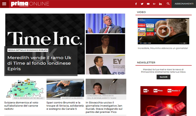 Italiaonline ha realizzato il nuovo sito Primaonline.it, che oggi si presenta con un nuovo look and feel e una riorganizzazione dei suoi ricchi contenuti secondo i migliori web standard in ambito editoriale.Il restyling, innovativo e funzionale, è coerente con i nuovi trend di navigazione resa più fruibile ed intuitiva. L’impostazione informativa, con contenuti sempre aggiornati su fatti, notizie, documenti, dati, cifre, che hanno fatto di Primaonline un prezioso strumento per chi lavora in editoria, comunicazione, audiovideo, si fonde con la potenza generata da Italiaonline e assicura grande rapidità e facilità di consultazione grazie a un design 100% responsivo.