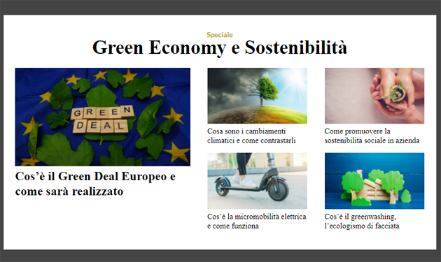In the new area, QuiFinanza Green readers will find content on ethical and sustainable finance, corporate strategies that aim to have a positive impact on the environment, people and society, and governance initiatives based on criteria of transparency and long-term objectives. Ample space is also given to advice and useful information on: recycling, reuse, reutilization; lifestyles and good practices to take care of and improve the planet we live in. And again, themes and topics of the moment such as: