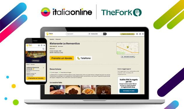 Italiaonline, Italy’s largest internet company, owner of the online directories PagineGialle.it, PagineBianche.it and TuttoCittà.it, and TheFork, the leading platform for online restaurant bookings and European leader in restaurant management systems with TheFork Manager, announce a strategic partnership.
